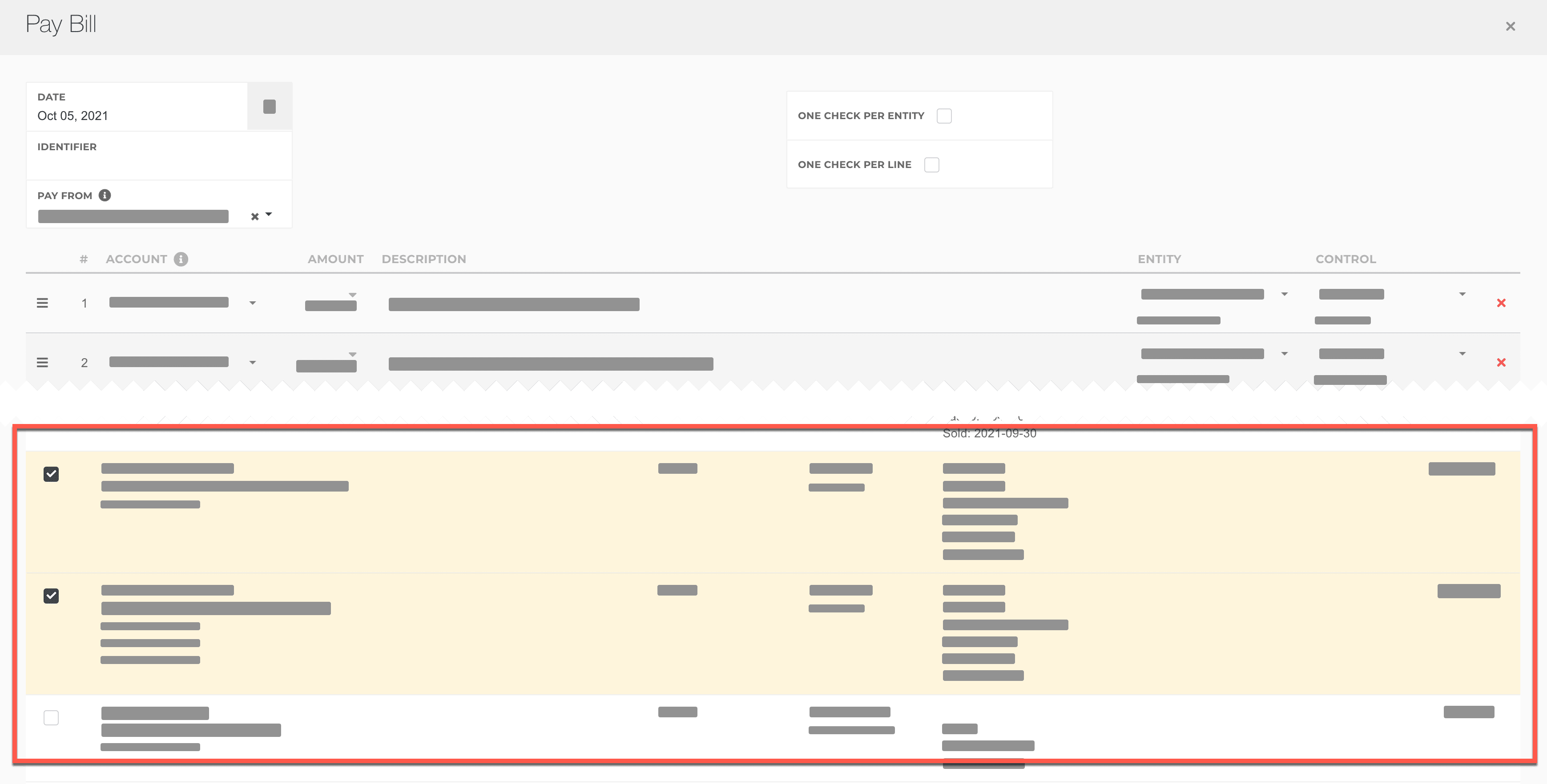 You can make payments via the Dashboard by checking off the items on the left-hand side you want to pay, and then clicking Pay Selected.