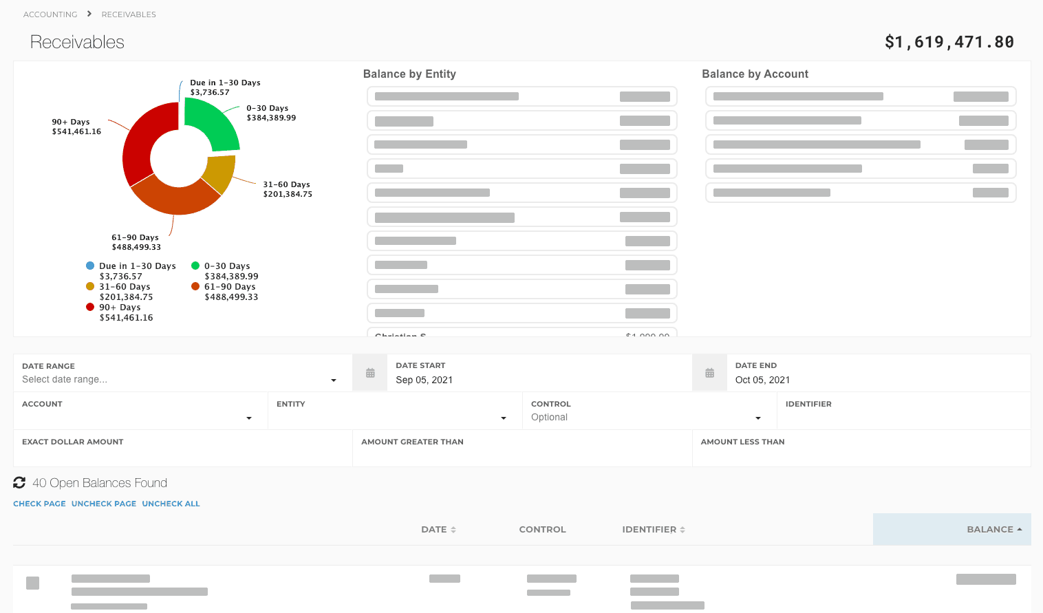 Receivables involve all operations related to receiving money, primarily that of Payments and receiving money on tickets, deals, and loans.