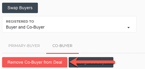 To remove a co-buyer, open the Customers > Co-Buyer tab and click the Remove Co-Buyer fom Deal button.