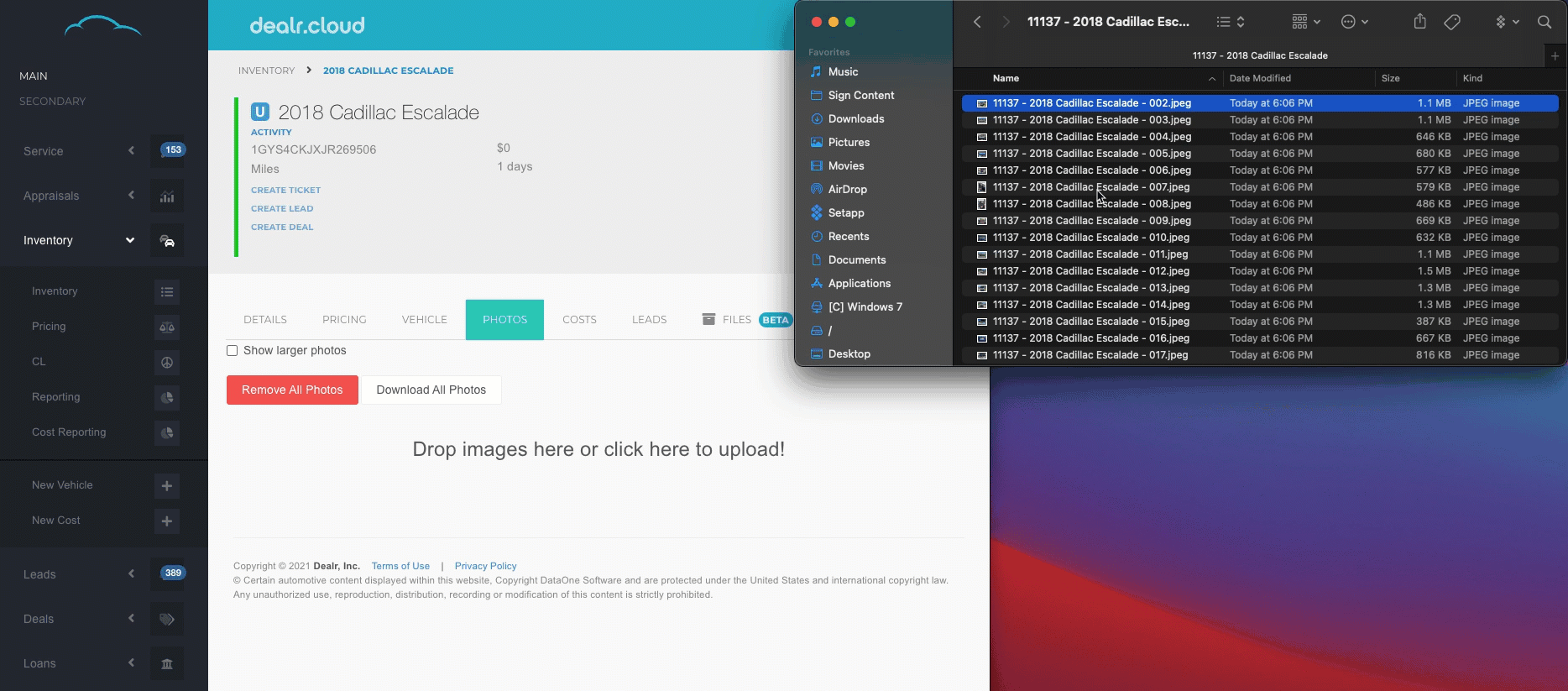 It's also easy to upload photos from the mobile app. Just open up the vehicle, go to photos, and start taking pictures! The photos will automatically get uploaded and be shown on your vehicle.