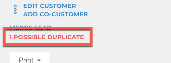 Any possible duplicates are shown on the lead to help avoid two salespeople working the same customer. Possible Duplicates will be found if any 2 of the following are true.