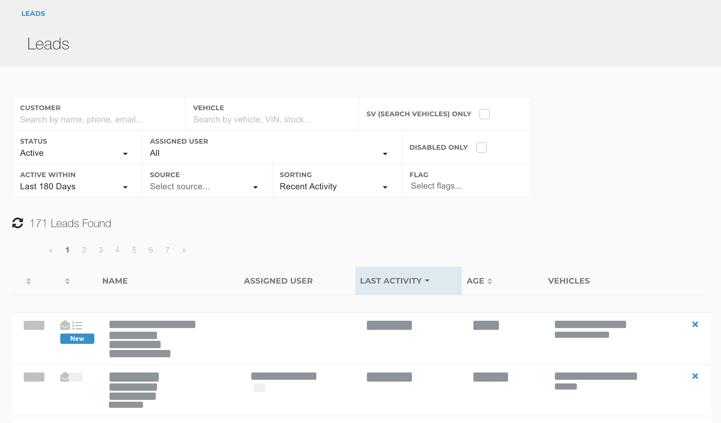 This filter option allows you to limit the search results page to surface those leads with Search Vehicles attached to them. This is a convenient method for monitoring which vehicles that customers have requested or inquired about.