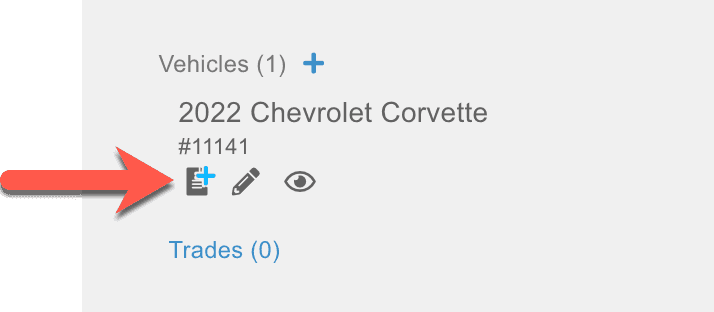 Creating a worksheet can be done from the Vehicles section in a lead. Just click the blue plus icon next to a page, and you'll create a worksheet! If a worksheet has already been created, this icon will simply look like a page icon and you can click it to open the previously created and worked worksheet.