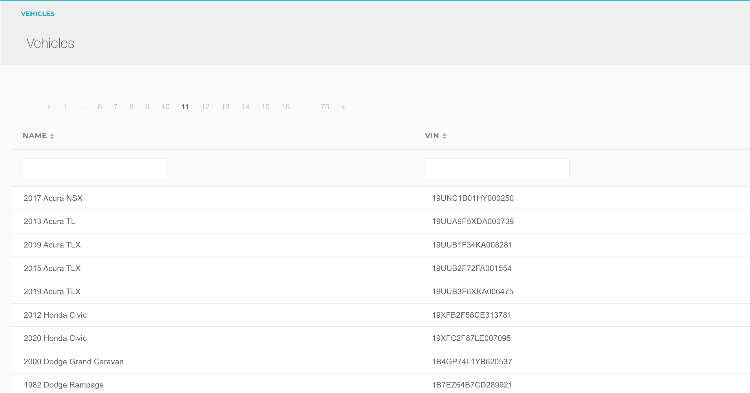 Vehicles are accessed by many modules and are used to record and track all inventory added to the system.