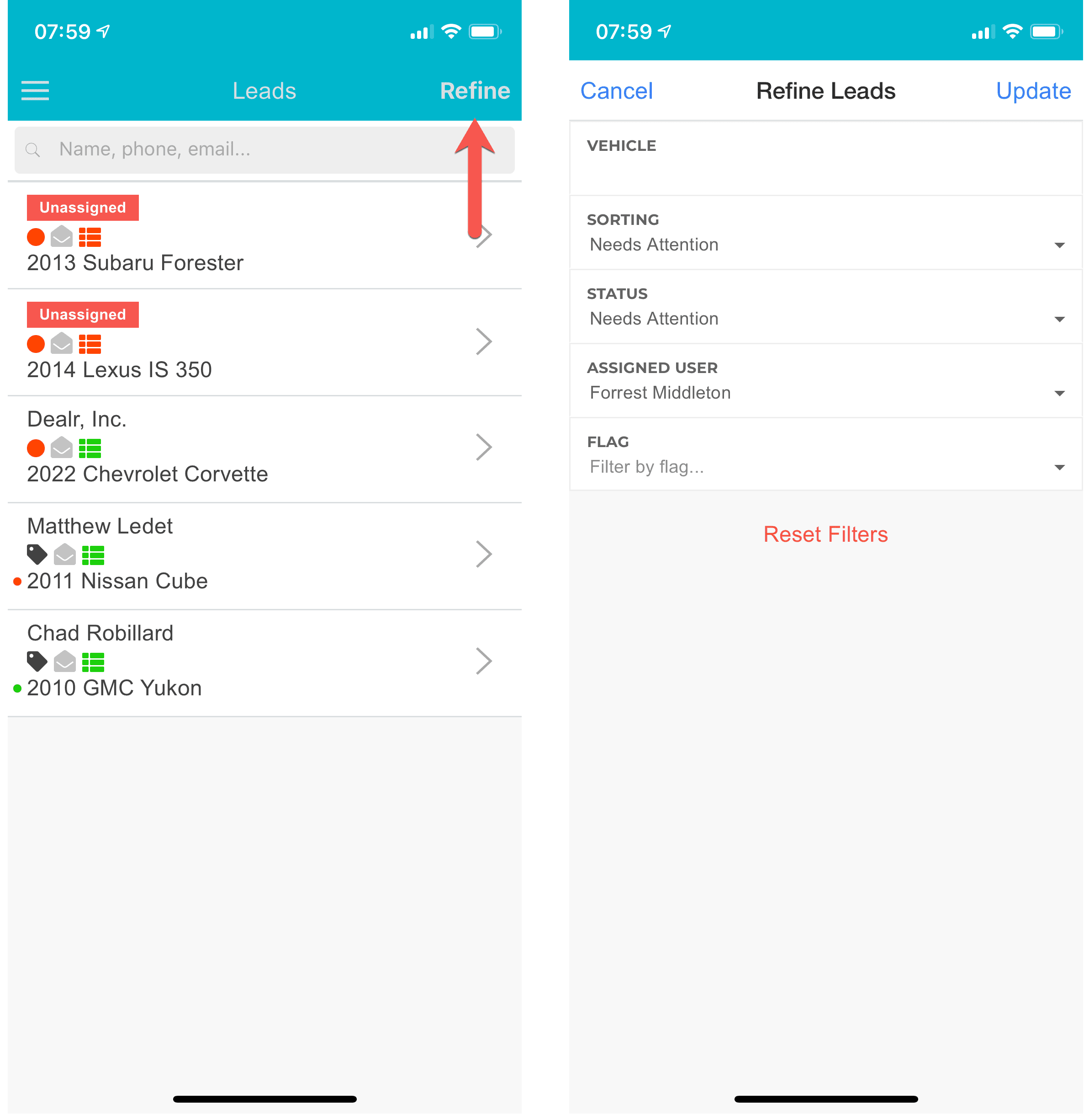 At the top of the list for each of the above Items, you'll see a Refine button. Click that, and the available filters will be shown for you to modify. These filters are saved even when you close the app, so be sure to check them if you can't find what you're looking for.