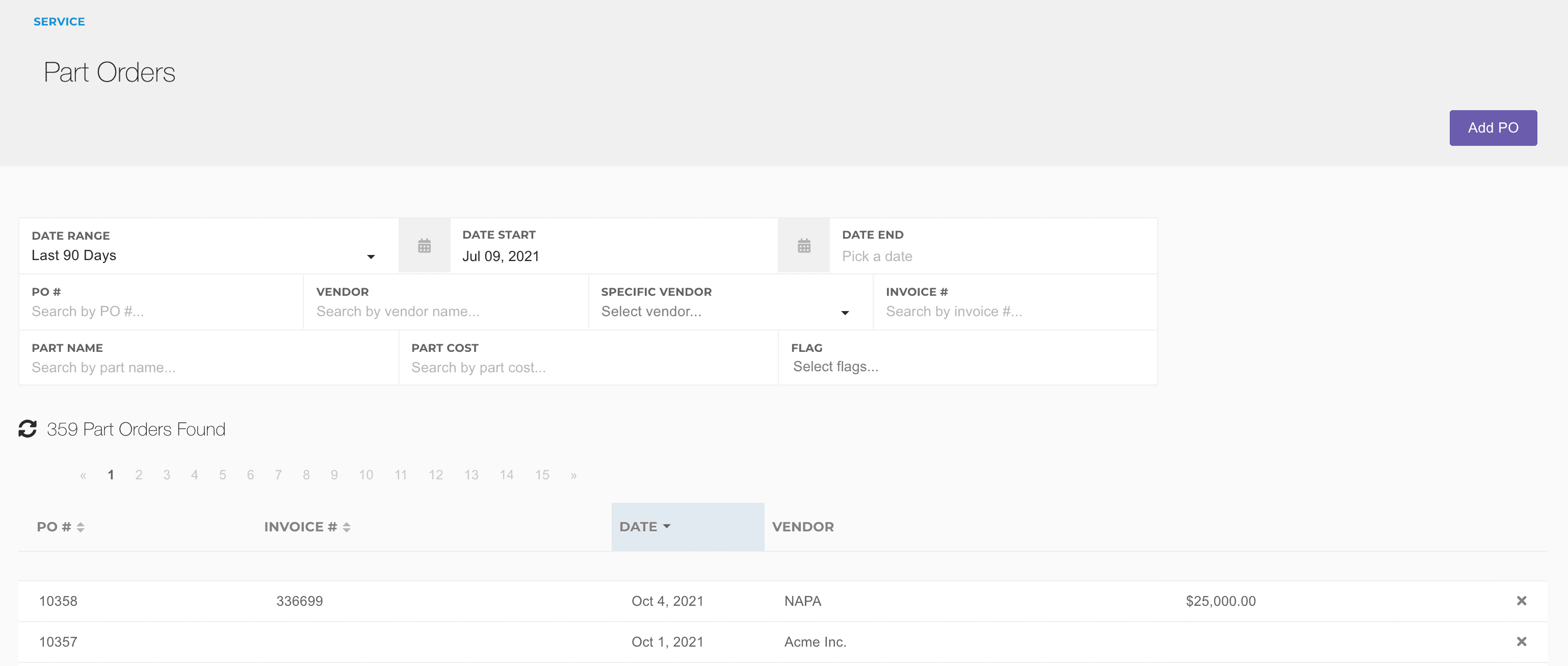 Part Orders on the ticket for the same vendor will also show here, but we recommend using a new part order if the purchase of the part is more than a day or two after the date of the original Part Order.