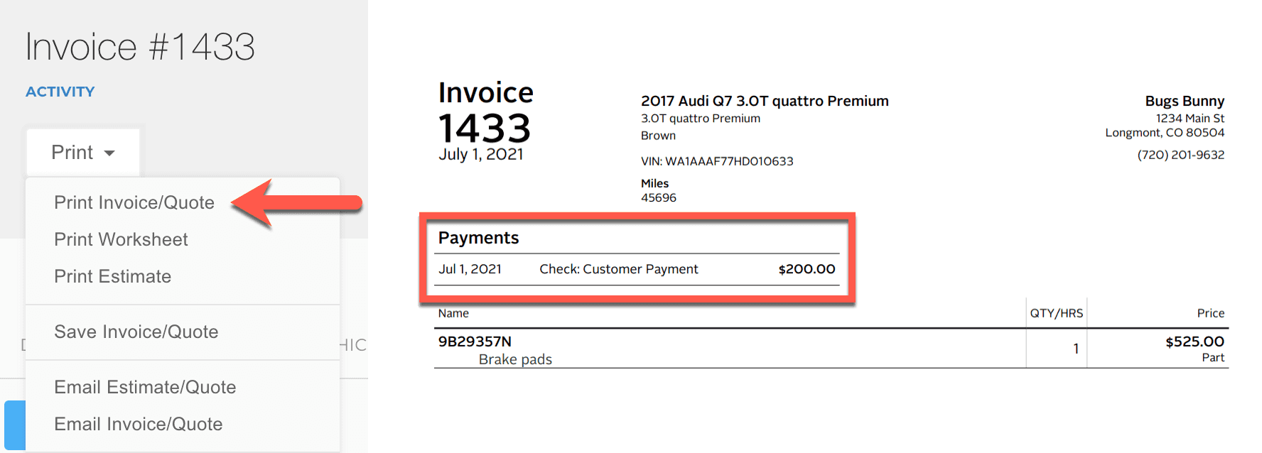 The invoice balance can be seen below the invoice totals.