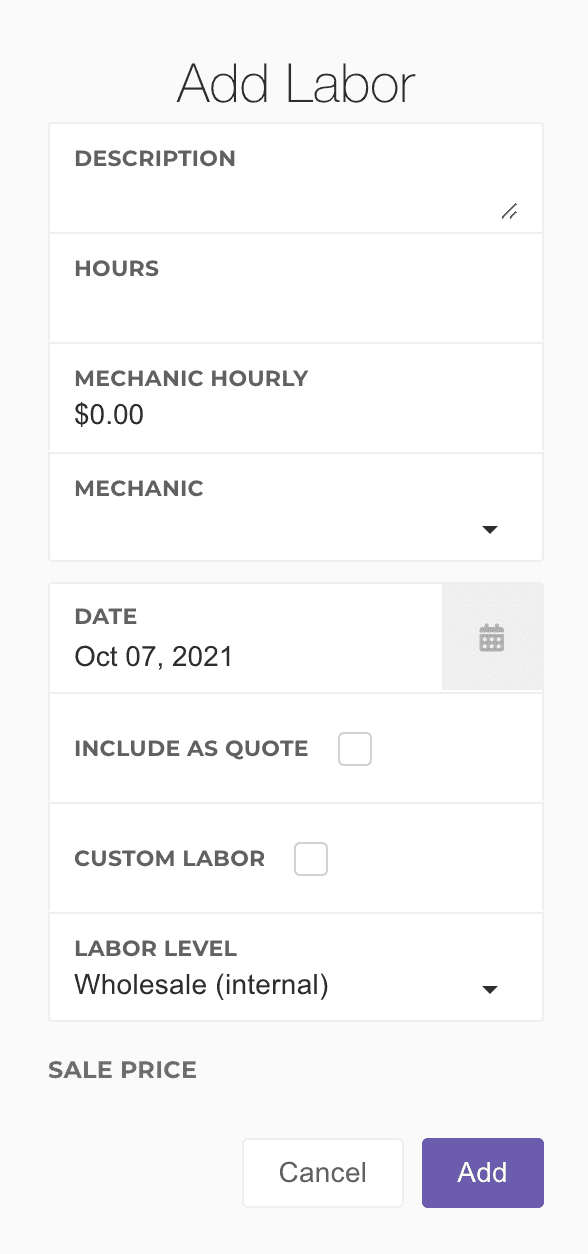 Mechanic Hourly: Used to track ticket costs and create accounting payables for the mechanic's labor. Automatically updates to the mechanic's default rate upon selection.