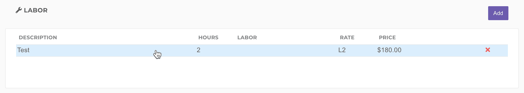 Labor Level: The billed hourly rate for the labor. Dropdown options are customizable in settings.