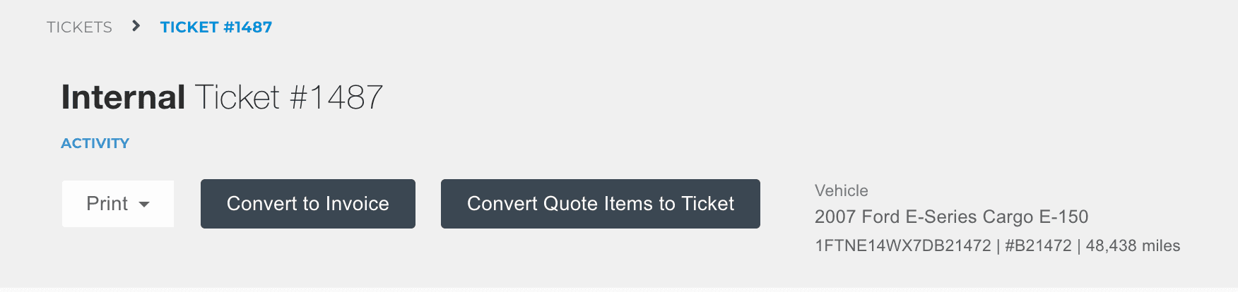 If a ticket or invoice contains quoted items, clicking the Convert Quote Items to Ticket button at the top creates a new ticket containing all the quoted items.